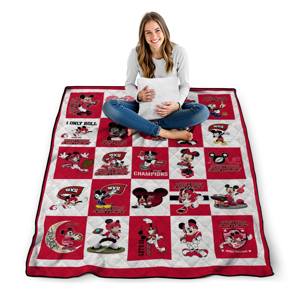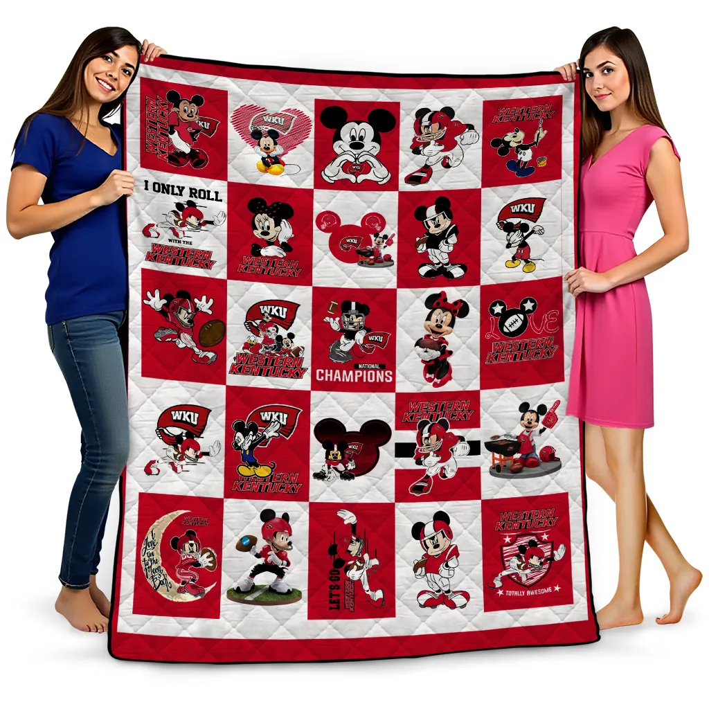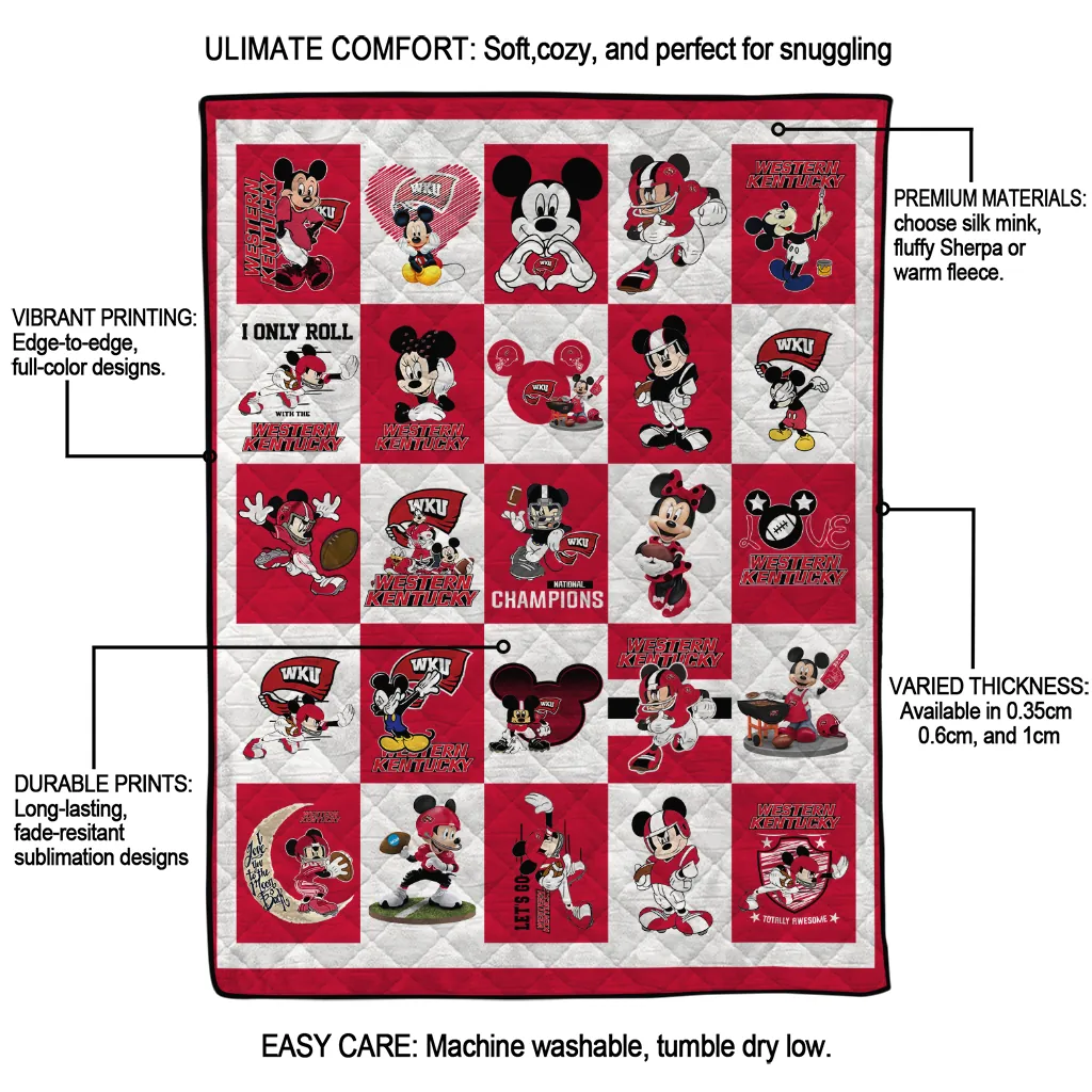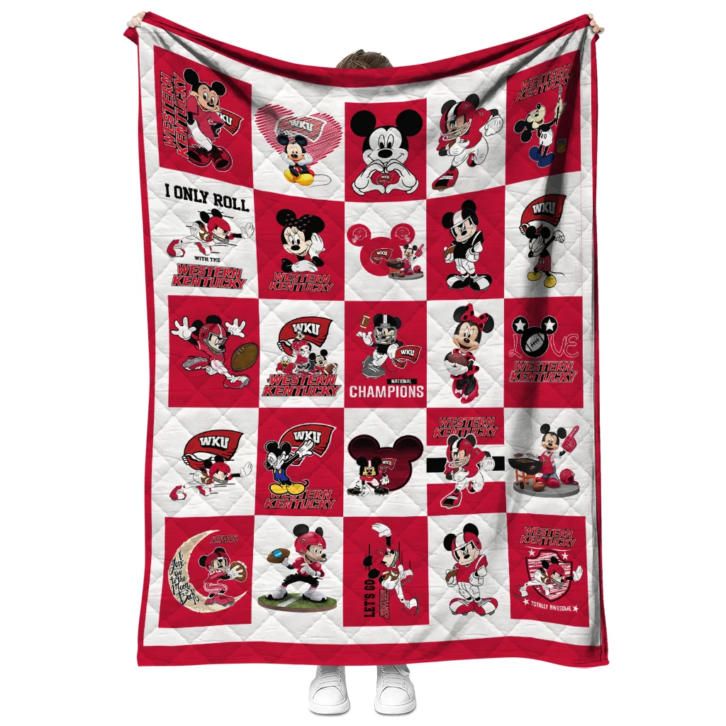 Western Kentucky Hilltoppers Mickey Mouse Motif Red White Quilt Blanket
