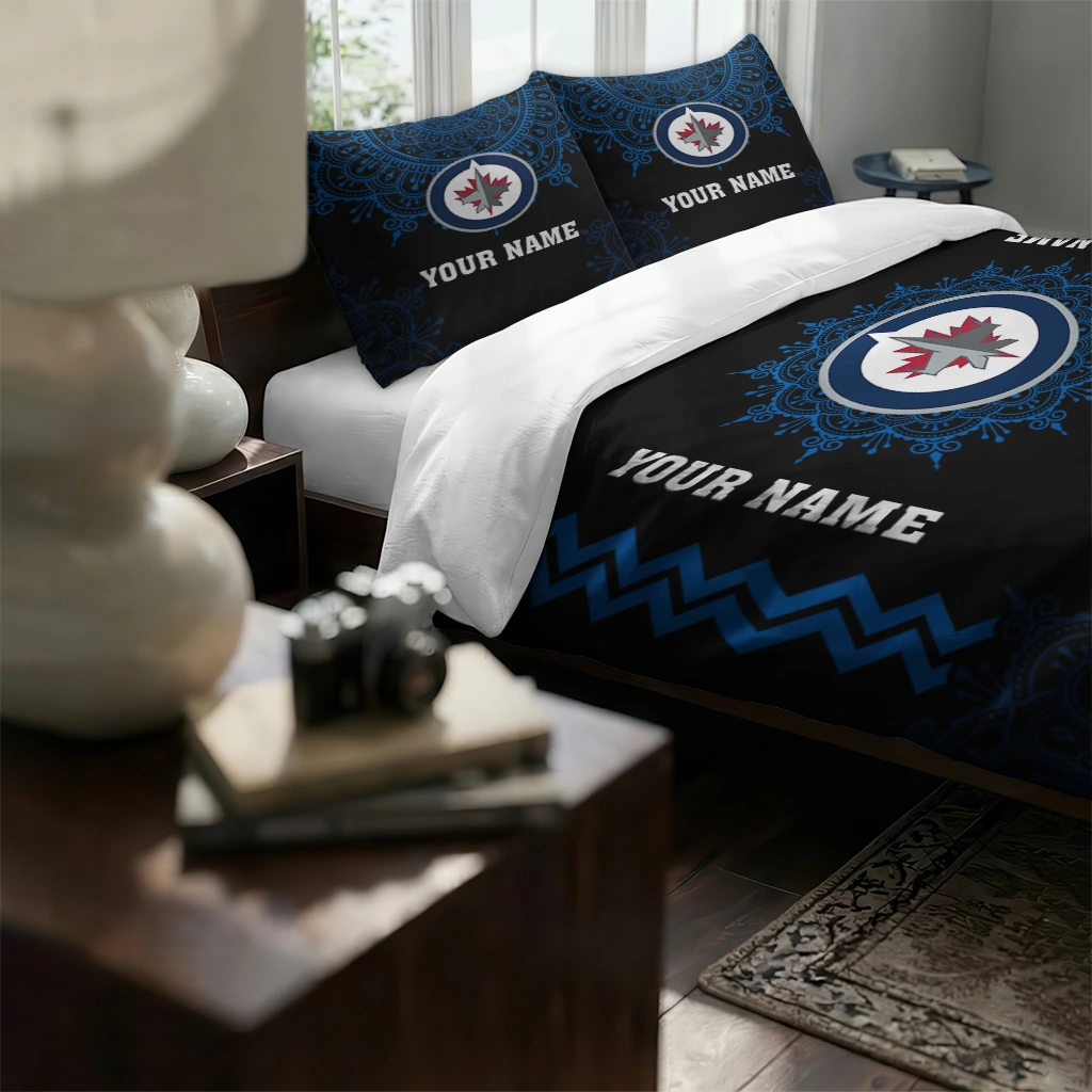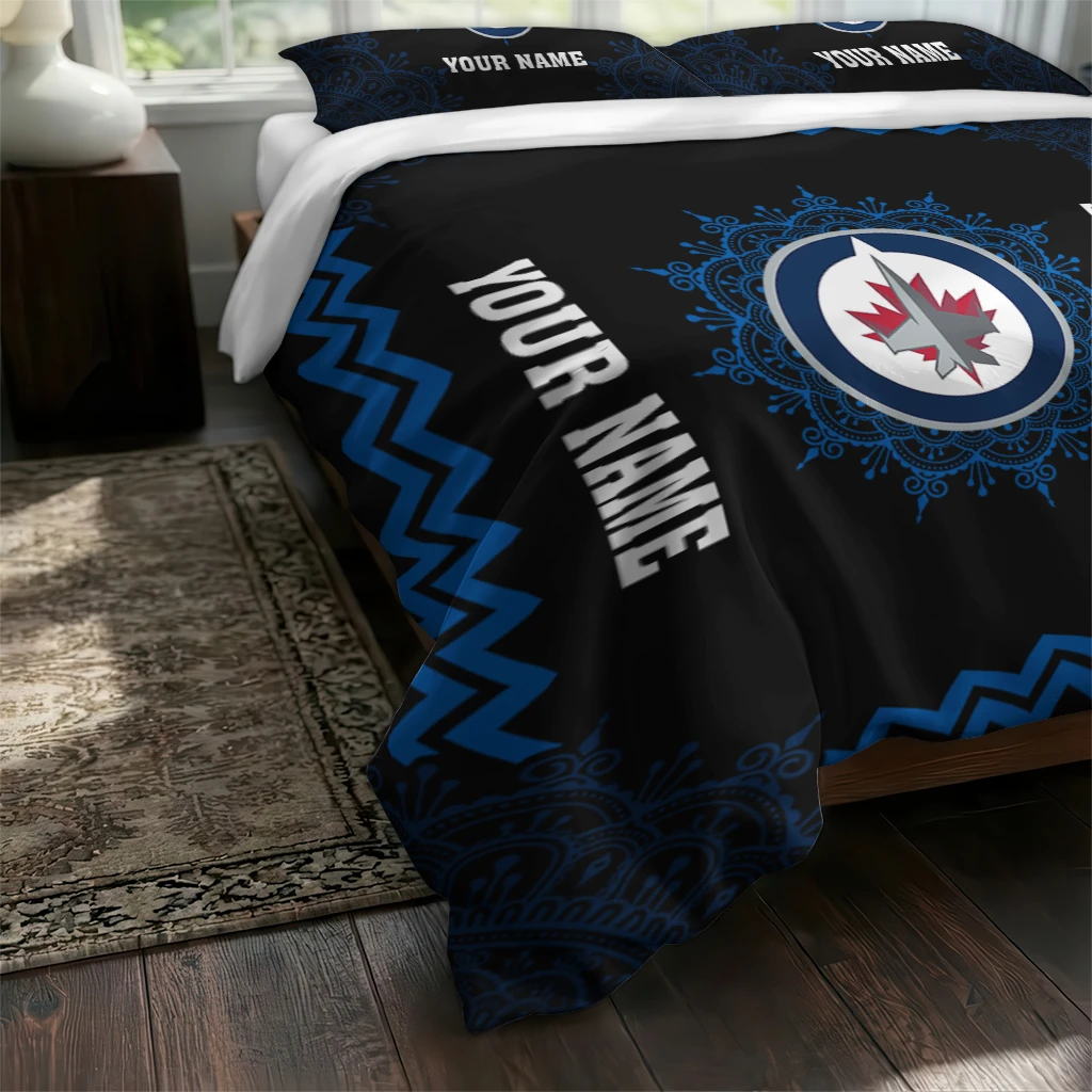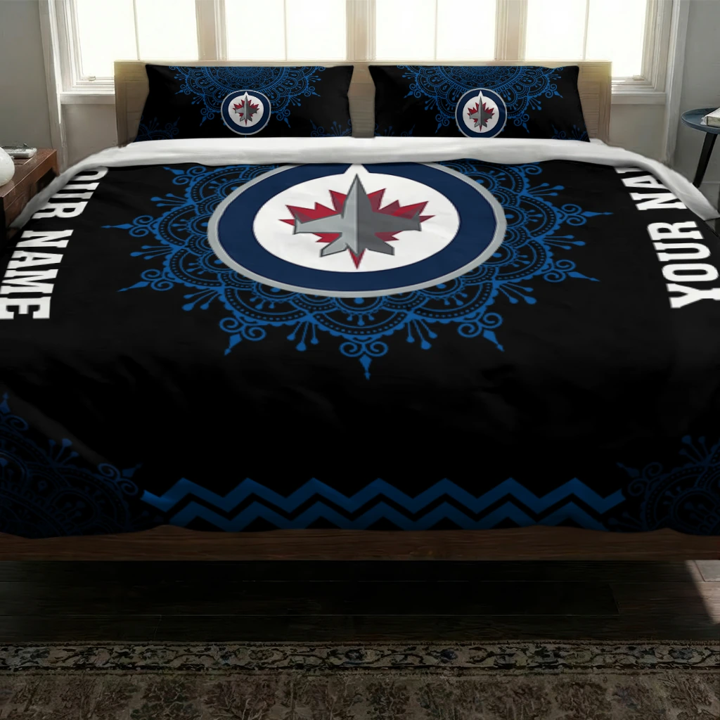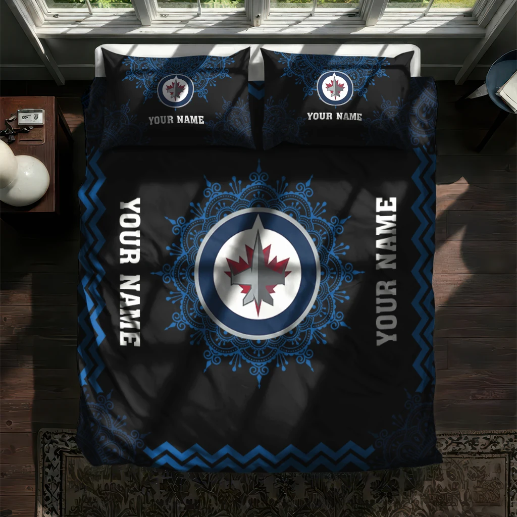Winnipeg Jets Bedding Set – Personalized Mandala Lacework Black Blue