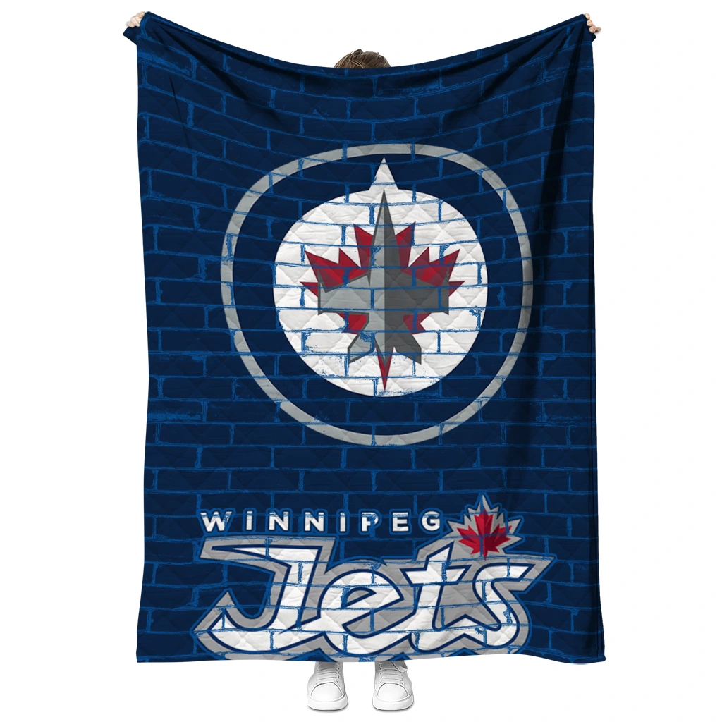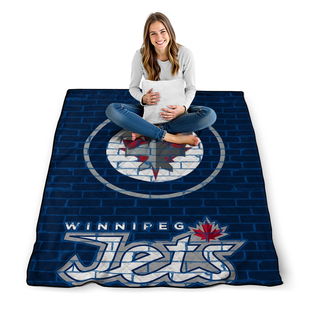 Wrap yourself in warmth and pride with the Winnipeg Jets Brick Grid Blue Quilt Blanket from the Winnipeg Jets Blankets collection at Yes That Blanket. Made from 100% premium quilting-weight polyester blended with a touch of microfiber, this quilt offers a smooth, soft finish you’ll love. Choose between two quilting styles—Stipple or Diagonal—and enjoy the comfort of a cotton-filled layer inside that adds extra coziness for every season. The border is available in classic black or white, giving your design a clean, timeless edge.