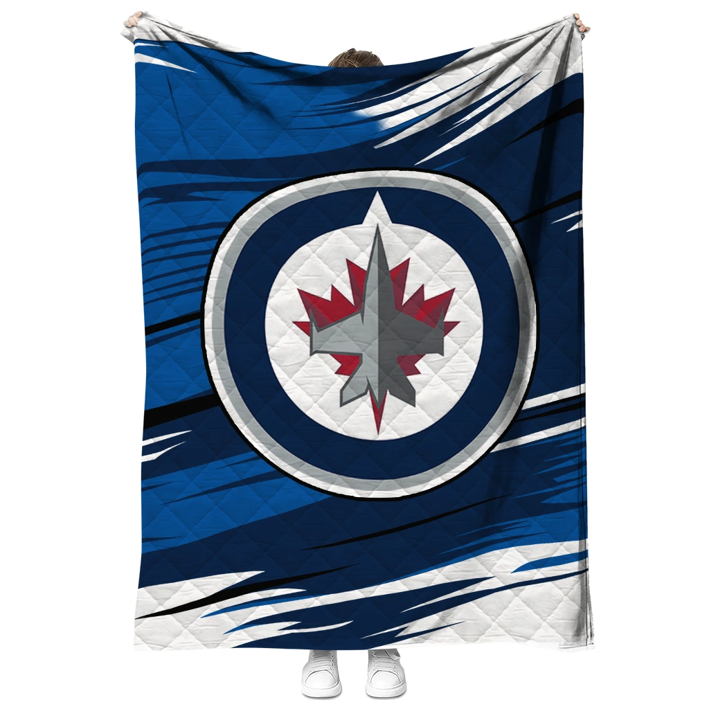 Wrap yourself in warmth and pride with the Winnipeg Jets Wild Lines Blue White Quilt Blanket from the Winnipeg Jets Blankets collection at Yes That Blanket. Made from 100% premium quilting-weight polyester blended with a touch of microfiber, this quilt offers a smooth, soft finish you’ll love. Choose between two quilting styles—Stipple or Diagonal—and enjoy the comfort of a cotton-filled layer inside that adds extra coziness for every season. The border is available in classic black or white, giving your design a clean, timeless edge.
