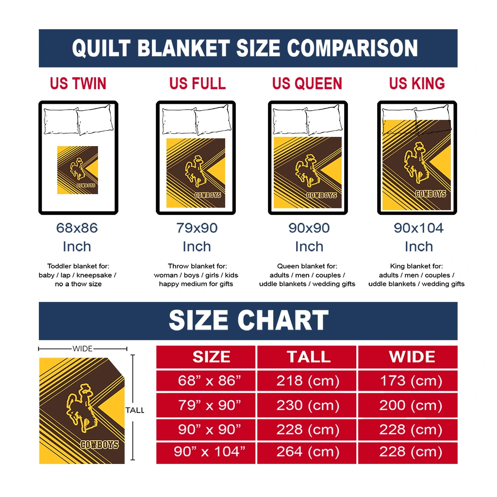 Wrap yourself in warmth and pride with the Wyoming Cowboys Arrow Layers Brown Quilt Blanket from the Wyoming Cowboys Blankets collection at Yes That Blanket. Made from 100% premium quilting-weight polyester blended with a touch of microfiber, this quilt offers a smooth, soft finish you’ll love. Choose between two quilting styles—Stipple or Diagonal—and enjoy the comfort of a cotton-filled layer inside that adds extra coziness for every season. The border is available in classic black or white, giving your design a clean, timeless edge.