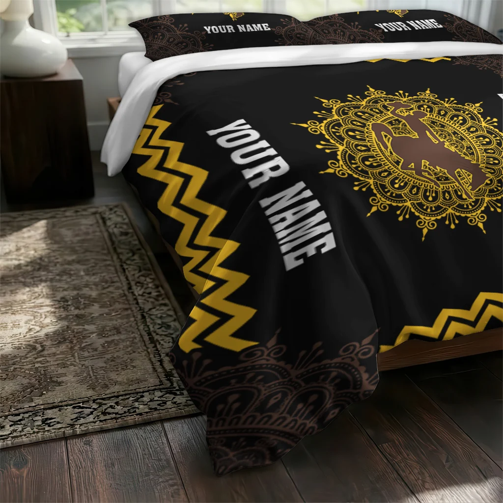 Wyoming Cowboys Bedding Set – Personalized Mandala Lacework Black Yellow