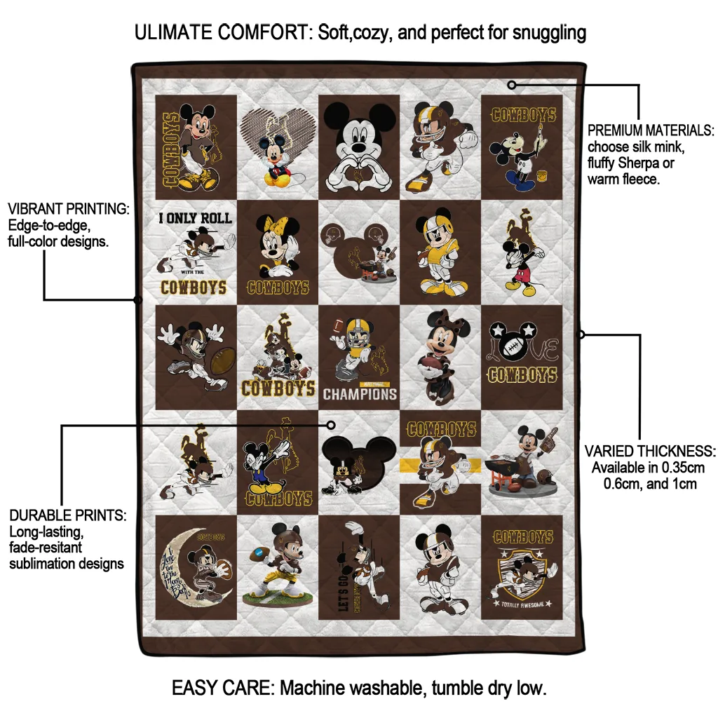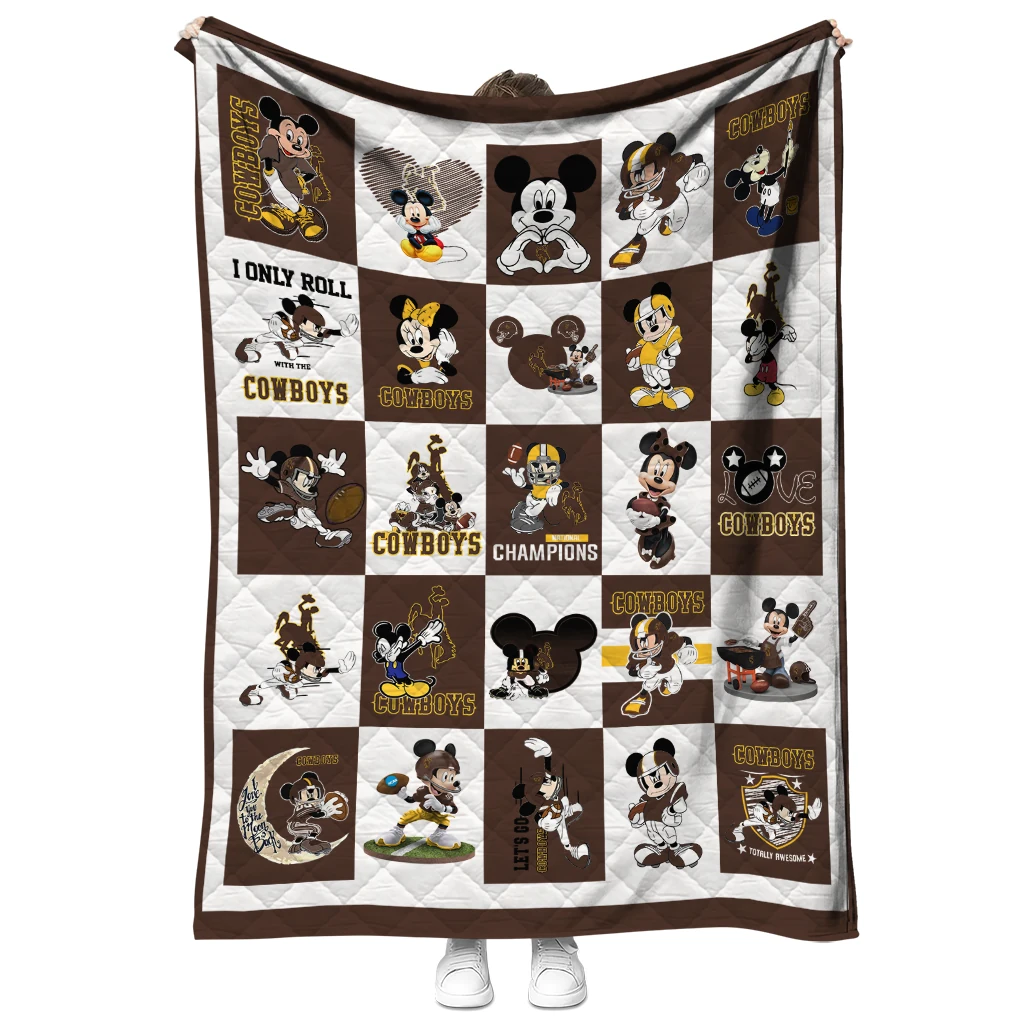 Wyoming Cowboys Mickey Mouse Motif Brown White Quilt Blanket