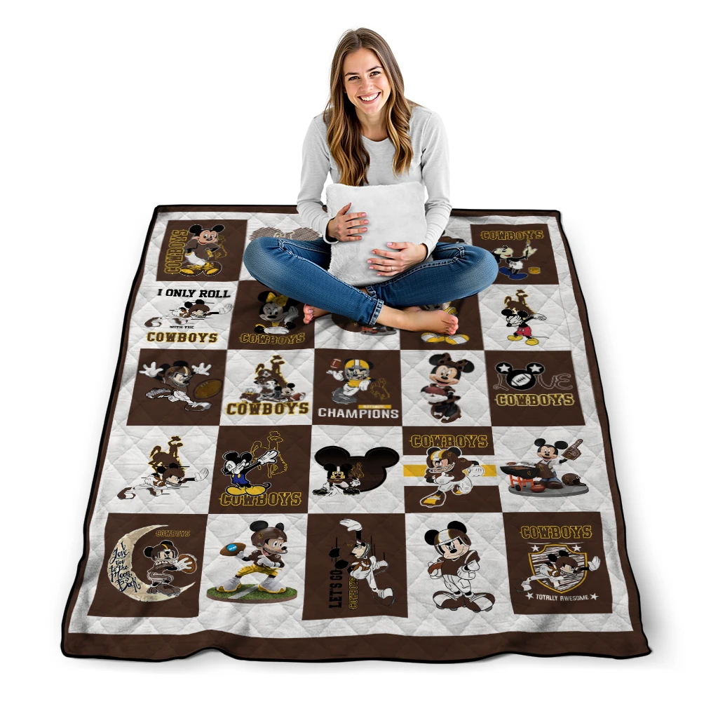 The Wyoming Cowboys Mickey Mouse Motif Brown White Quilt Blanket is more than a blanket—it’s everyday comfort, thoughtfully made. Crafted from premium quilting fabric with a soft microfiber touch, it offers a smooth hand-feel and lasting coziness. Layered quilting with a cotton-filled core provides adaptable warmth across seasons while maintaining a clean, tailored look on your bed or sofa.
