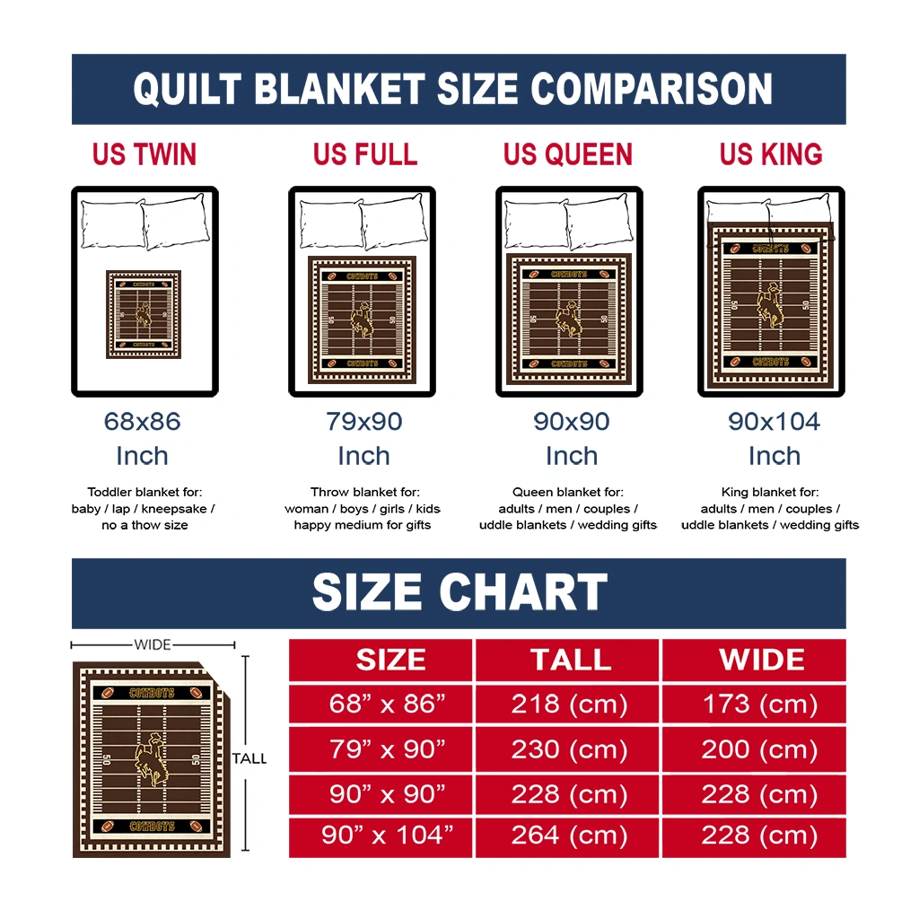 The Wyoming Cowboys Mickey Player Brown Quilt Blanket is more than a blanket—it’s everyday comfort, thoughtfully made. Crafted from premium quilting fabric with a soft microfiber touch, it offers a smooth hand-feel and lasting coziness. Layered quilting with a cotton-filled core provides adaptable warmth across seasons while maintaining a clean, tailored look on your bed or sofa.