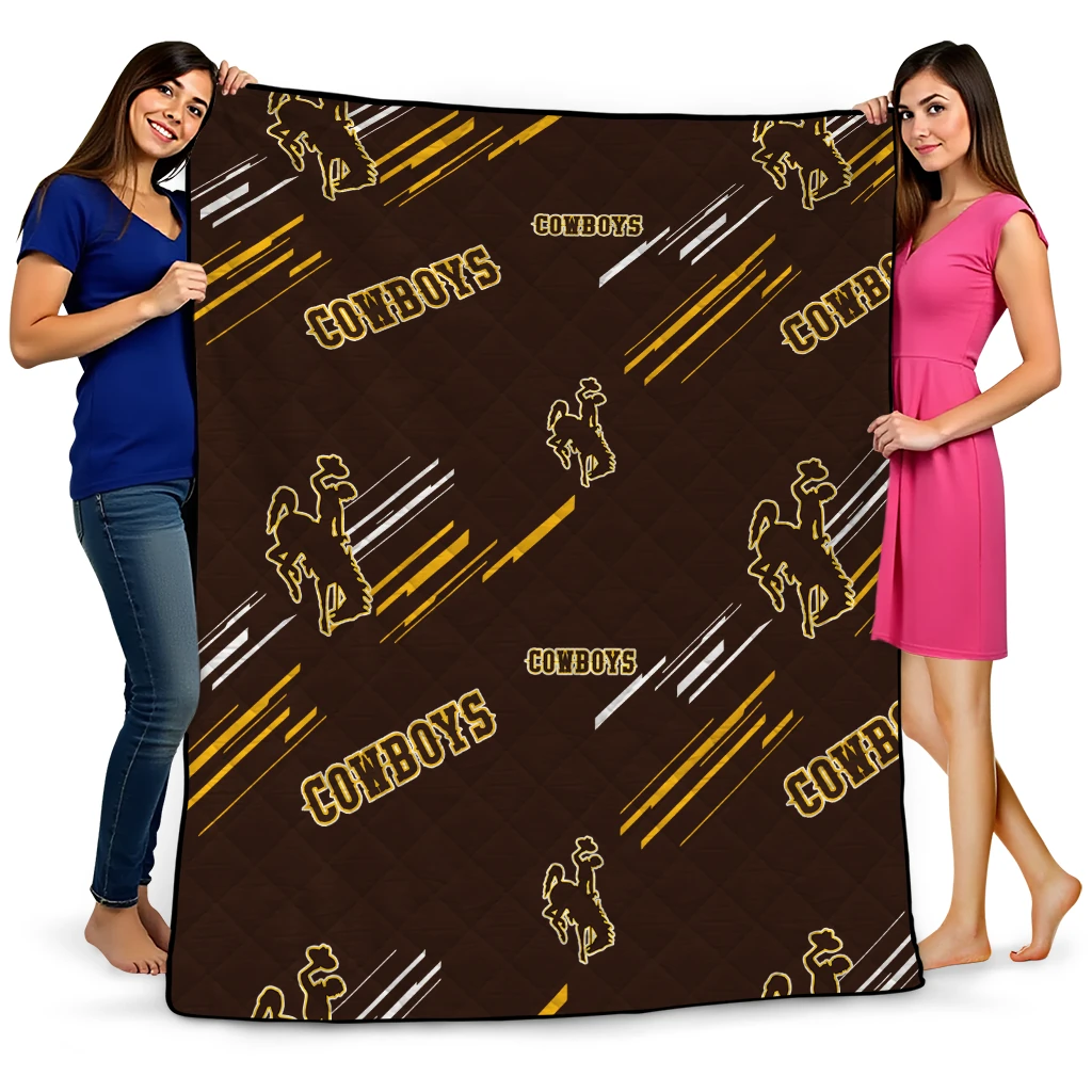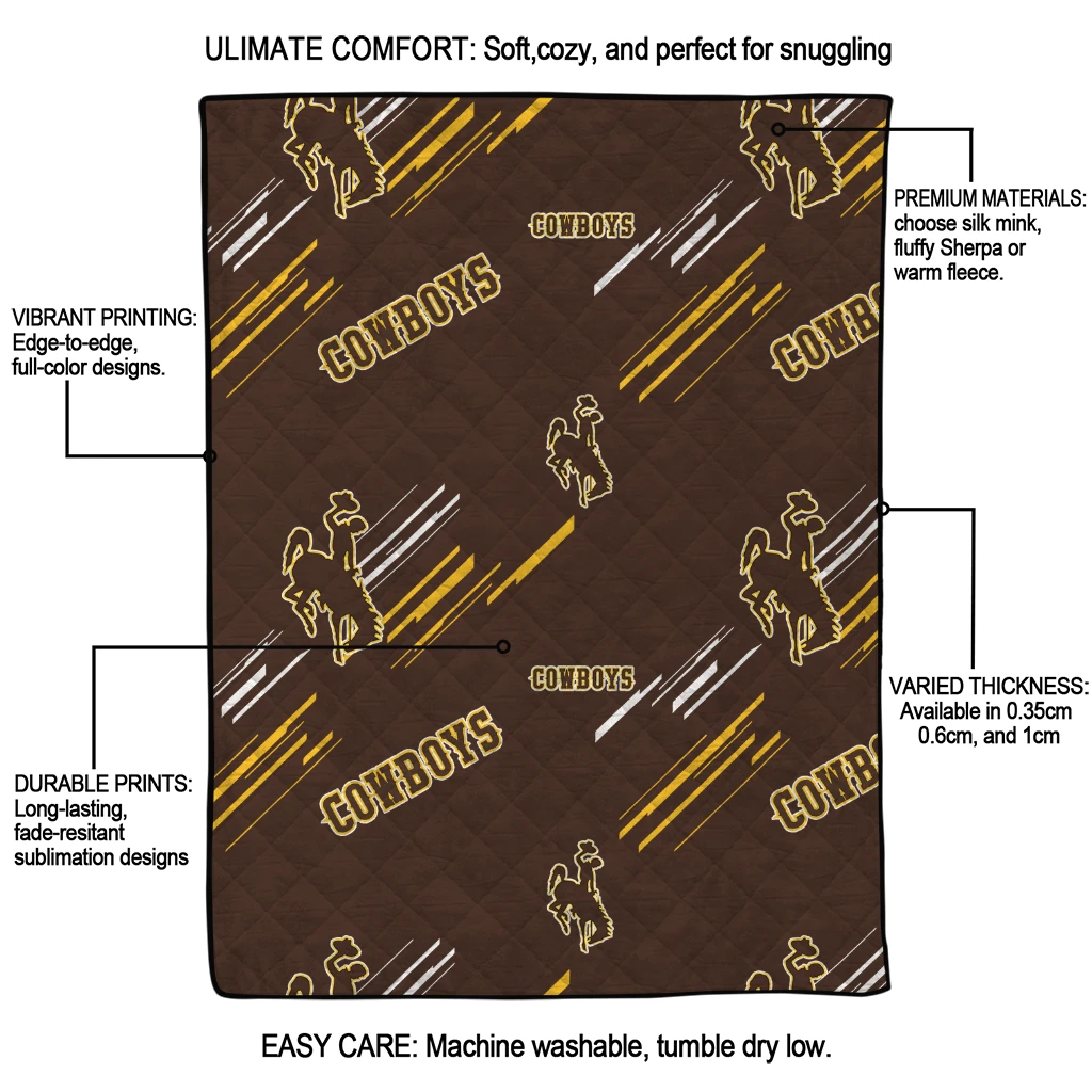 Wyoming Cowboys Sketch Lines Brown Quilt Blanket
