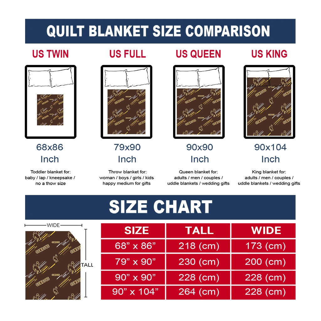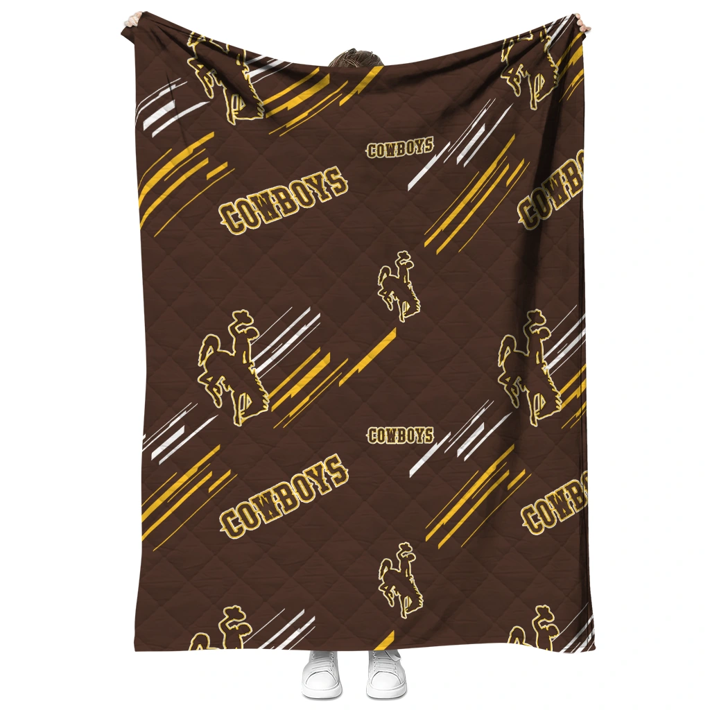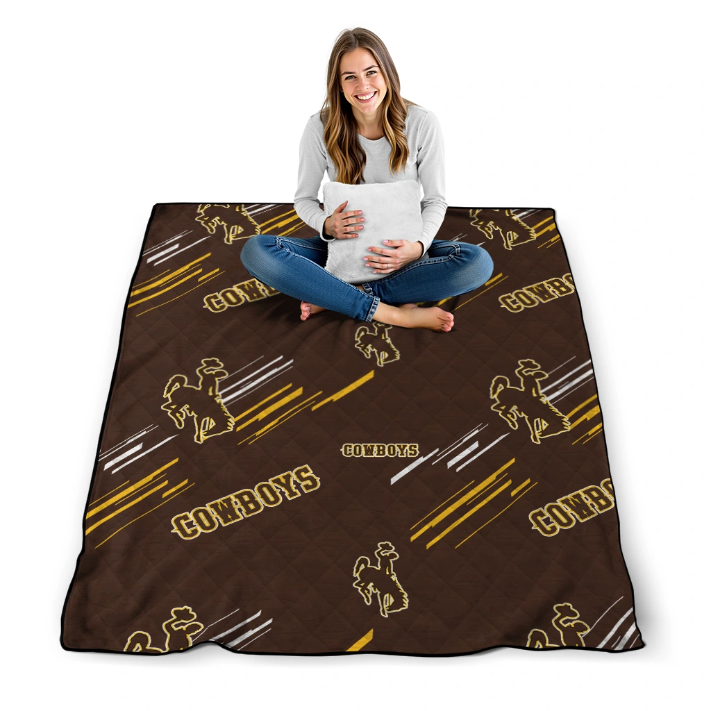 The Wyoming Cowboys Sketch Lines Brown Quilt Blanket is more than a blanket—it’s everyday comfort, thoughtfully made. Crafted from premium quilting fabric with a soft microfiber touch, it offers a smooth hand-feel and lasting coziness. Layered quilting with a cotton-filled core provides adaptable warmth across seasons while maintaining a clean, tailored look on your bed or sofa.