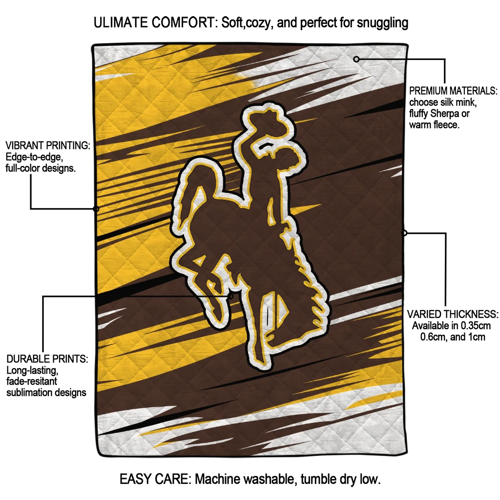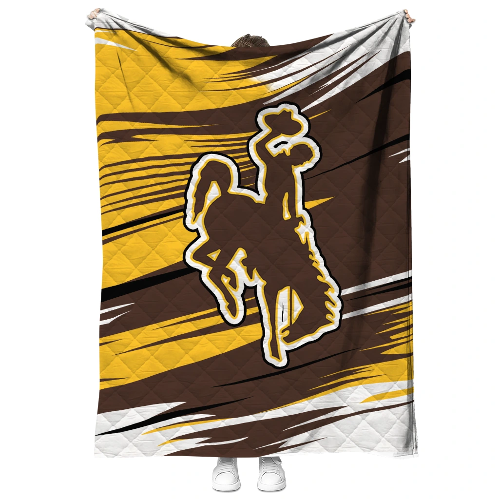 Wrap yourself in warmth and pride with the Wyoming Cowboys Wild Lines Brown White Quilt Blanket from the Wyoming Cowboys Blankets collection at Yes That Blanket. Made from 100% premium quilting-weight polyester blended with a touch of microfiber, this quilt offers a smooth, soft finish you’ll love. Choose between two quilting styles—Stipple or Diagonal—and enjoy the comfort of a cotton-filled layer inside that adds extra coziness for every season. The border is available in classic black or white, giving your design a clean, timeless edge.